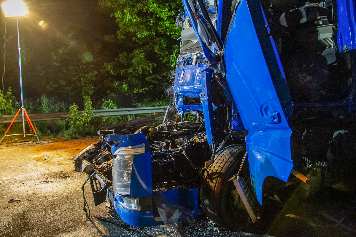 Die Bergungsarbeiten durch das beauftragte Spezialunternehmen dauerten bis zum Sonntag um 03:45 Uhr morgens. Alle drei betroffenen LKW mussten aufwendig geborgen und abtransportiert werden. Besonders die Bergung des aufgefahrenen, rumänischen LKW gestaltete sich schwierig. Das Führerhaus war völlig zusammengedrückt und musste erst vom Auflieger gelöst werden. Der gesamte Motorblock hatte sich gelöst und lag unter dem Fahrzeug, der Auflieger hatte sich im Sattel der Zugmaschine verkeilt und konnte nur unter erheblichem Kraftaufwand gelöst werden.