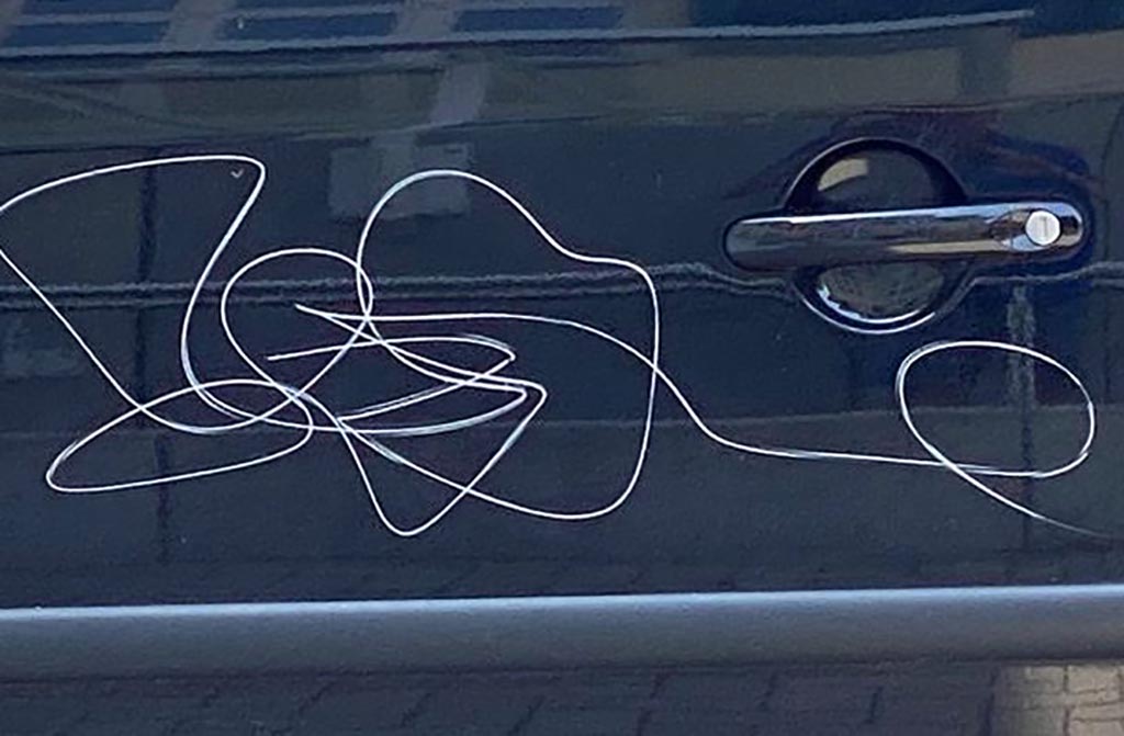Der Fahrzeughalter glaubte zunächst, dass Kinder mit weißer Kreide sein Auto angemalt hätten, was sich aber als kolossale Fehleinschätzung und kostenträchtiger Lackschaden herausstellte.