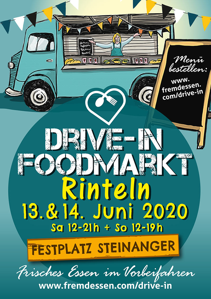 Am 13. und 14. Juni kommt gut ein halbes Dutzend Foodtrucks auf den Parkplatz am Steinanger nach Rinteln gefahren. Ganz wie bei einem normalen Drive In wird sich im Auto, auf dem Fahrrad oder auch zu Fuß angestellt und das Essen bestellt.