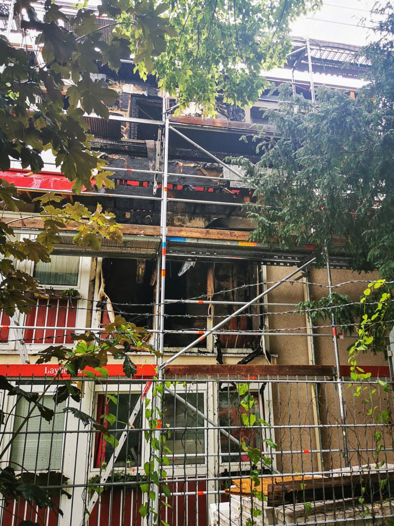 Die eingesetzten Feuerwehrkräfte waren bemüht, damit durch das Feuer nicht noch andere Gebäudeteile in Mitleidenschaft gezogen wurden.