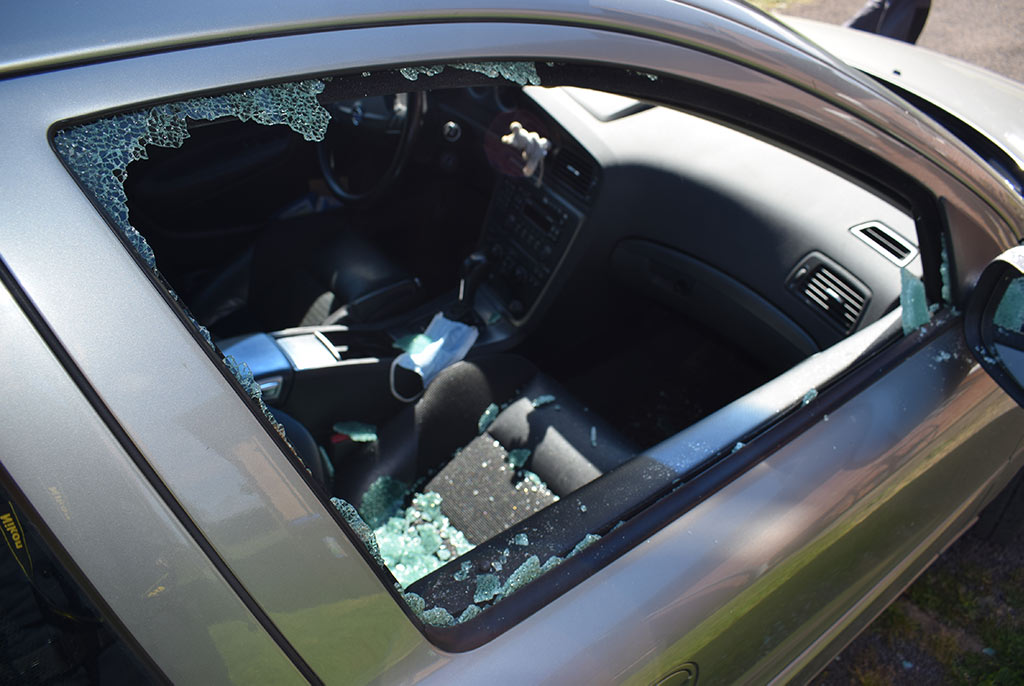 Vormittags um 09.30 Uhr bemerkte der Fahrzeugnutzer, dass die Seitenscheibe an der Beifahrerseite fast komplett zerstört wurde.