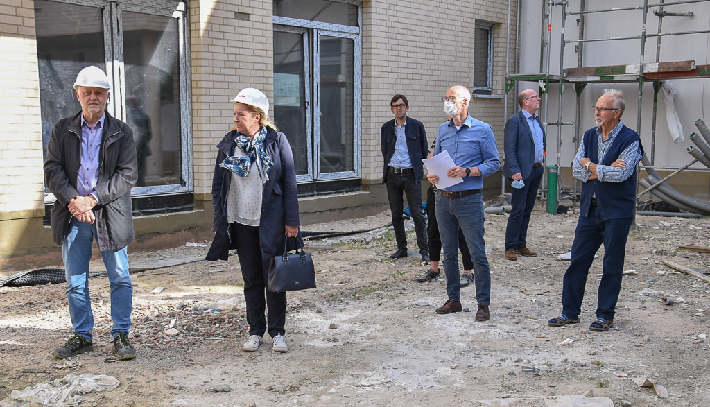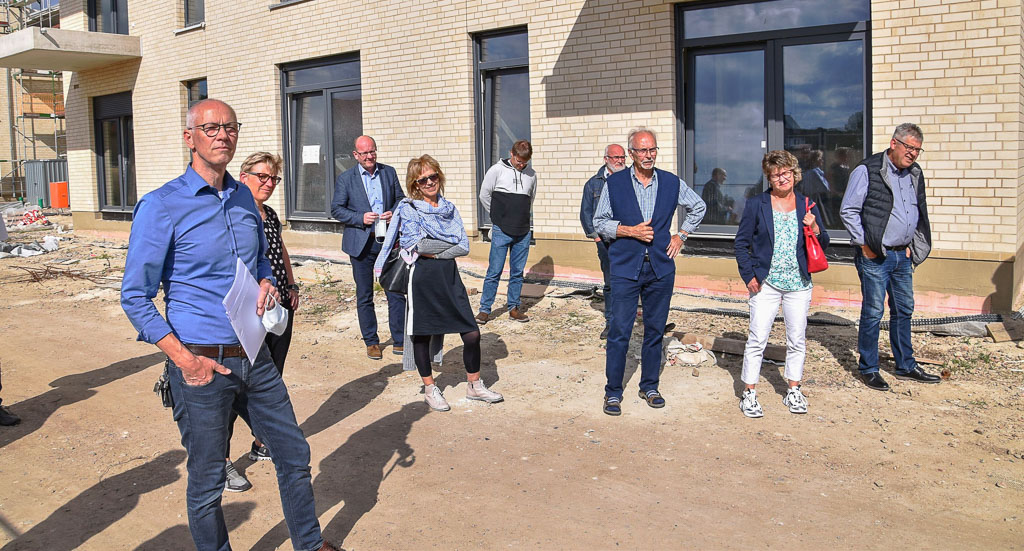 Angrenzend an den Dorfkern und ein Neubaugebiet, entsteht eine Einheit aus acht Baukörpern, die über zwei zentrale Erschließungskerne und Laubengänge miteinander verbunden sind. „Ihre Idee, Menschen verschiedenen Alters und verschiedener Herkunft zusammenzuführen, finde ich interessant“, sagte Ilsemann und erkundigte sich nach der Auswahl der Mieter.
