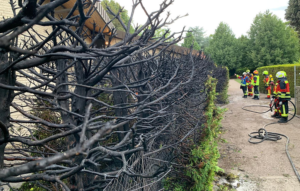 Dank des beherzten Eingreifens der Feuerwehr Bückeburg-Stadt konnte ein weiteres Übergreifen des Brandes auf ein angrenzendes Wohnhaus verhindert werden. Die Koniferenhecke brannte auf einem rund 18 Meter langen Teilstück ab.