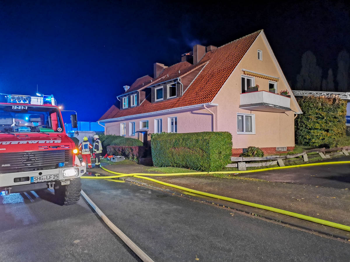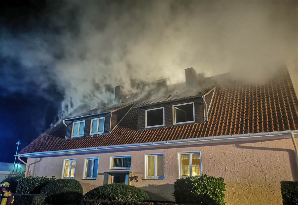 Bei Eintreffen der ersten Einsatzkräfte standen Teile einer Wohnung im ersten Obergeschoss in Vollbrand. Das Feuer griff bereits auf den Dachstuhl des Mehrfamilienhauses über. Die Bewohner des Hauses und die Polizei informierten die Einsatzkräfte, dass eine Person noch in der Brandwohnung sei, alle weiteren hätten bereits das Haus verlassen.