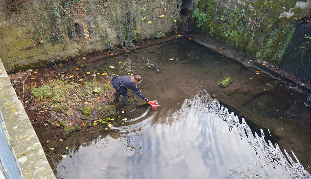 Eine Polizeikommissarin wechselte von den bequemen Dienstschuhen auf die uneleganten Gummistiefel und kletterte von der Schlossbrücke hinab in den feuchten und rutschigen Schlossbach. In der Tüte befand sich jedoch kein Diebesgut, sondern nur eine alte Jeanshose.