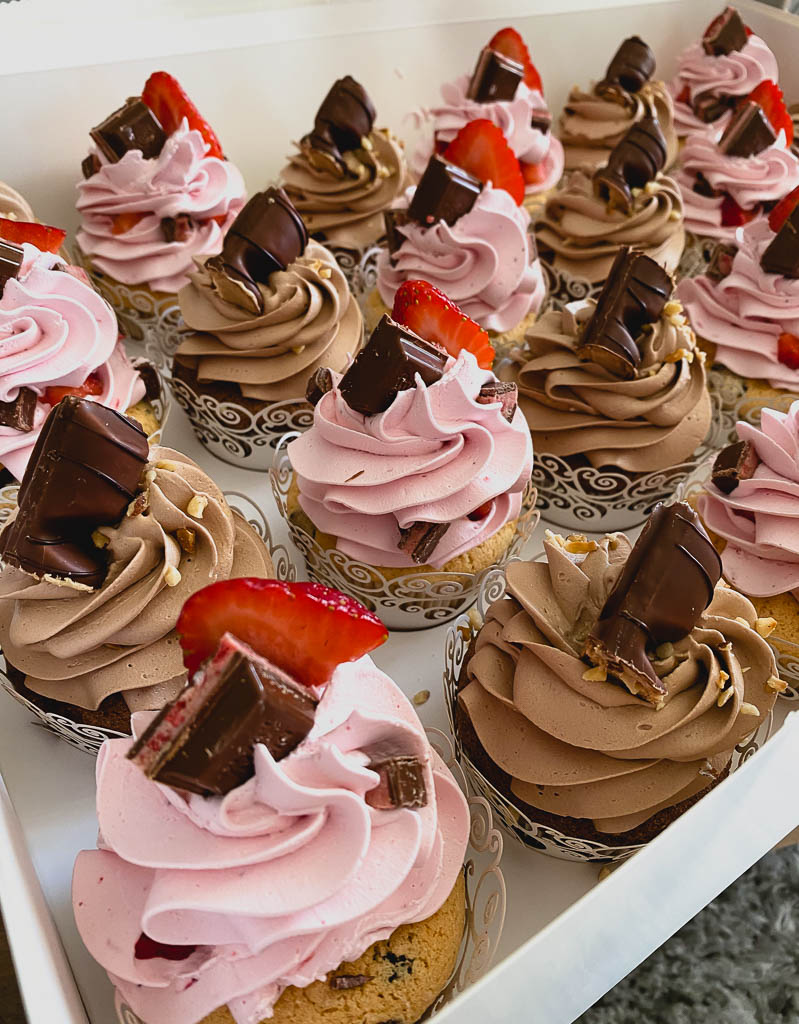 Box 6: „Cupcake Box“ (6 Teile) mit drei „Bueno“- und drei „Yogurt“-Riegel-Cupcakes. (Preis: 25 €)