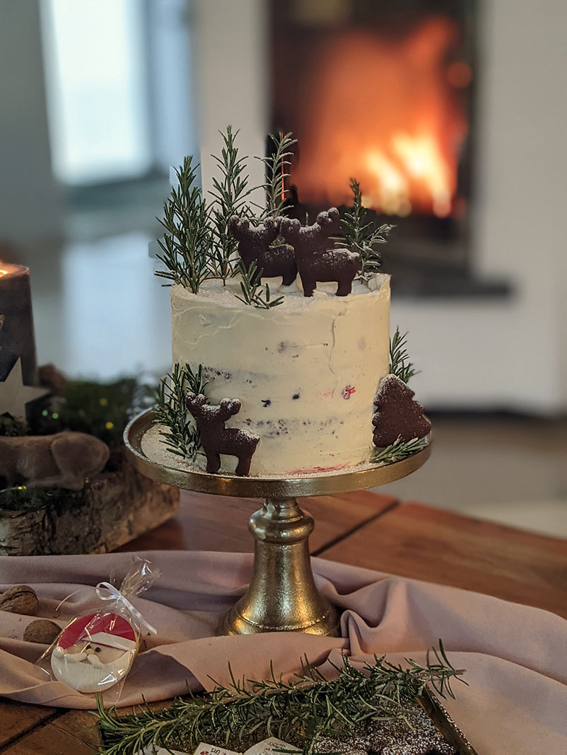 Box 3: Torte im Rentier-Look mit Joghurt-Waldbeeren-Füllung (ergibt ca. 14 Portionen, Preis: 80 €)