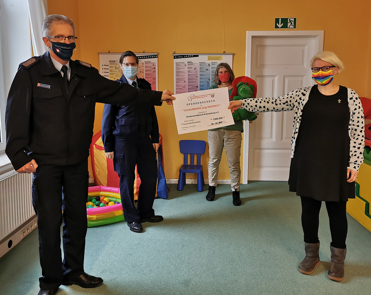 (Stadthagen) Über die Summe von 1.500 Euro freut sich der Kinderschutzbund Schaumburg. „Schaumburg zeigt Respekt!“ lautet die vom Kreisfeuerwehrverband Schaumburg e.V. initiierte Kampagne der Schaumburger Hilfsorganisationen. Neben einem Facebookprofilbanner stellte der Verband die Aufkleber zur Kampagne zur Verfügung. Mit Unterstützung der Kreis-Jugendfeuerwehr Schaumburg e.V. und des Teams Presse der Kreisfeuerwehr entstand das Logo zur Kampagne.
