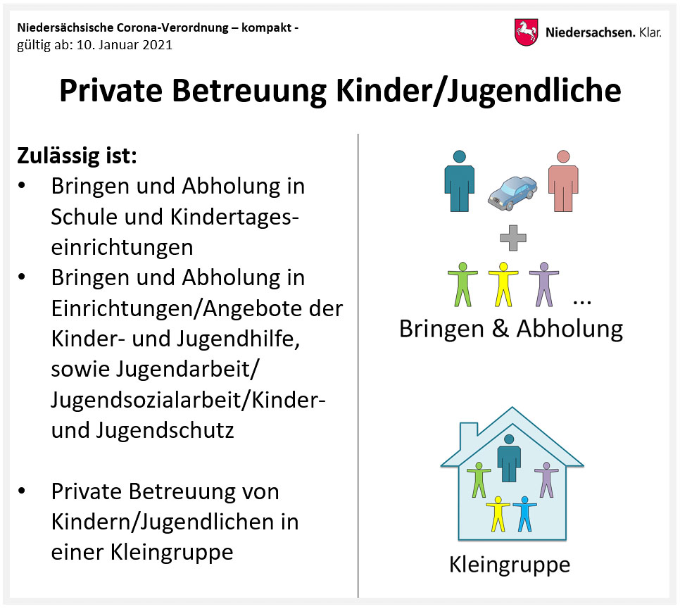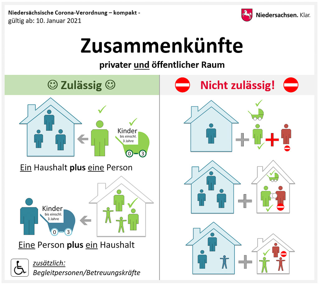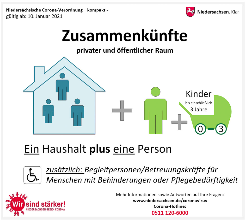 (Update: Das Land Niedersachsen hat zwischenzeitlich die strengen Kontaktregeln etwas gelockert. So zählen Babys oder Kleinstkinder bis drei Jahren, die von einem Elternteil betreut werden müssen, nicht mehr bei der ‚Ein-Haushalt+eine-Person-Regel‘ mit. Der Artikel wurde angepasst.)