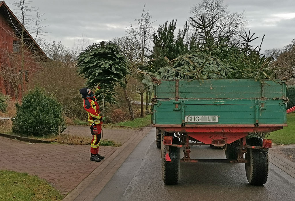 Etwas anders als wie sonst üblich, sammelten nicht die Jugendfeuerwehren und ihre Betreuerteams die Bäume ein, sondern die aktiven Mitglieder der Einsatzabteilung. Unter besonderen Hygienemaßnamen und mit Abstand, machten sich die kleinen Sammlergruppen gegen 9:00 Uhr mit ihren Traktoren auf dem Weg, um die ausgedienten Bäume in ihren Ortschaften einzusammeln.