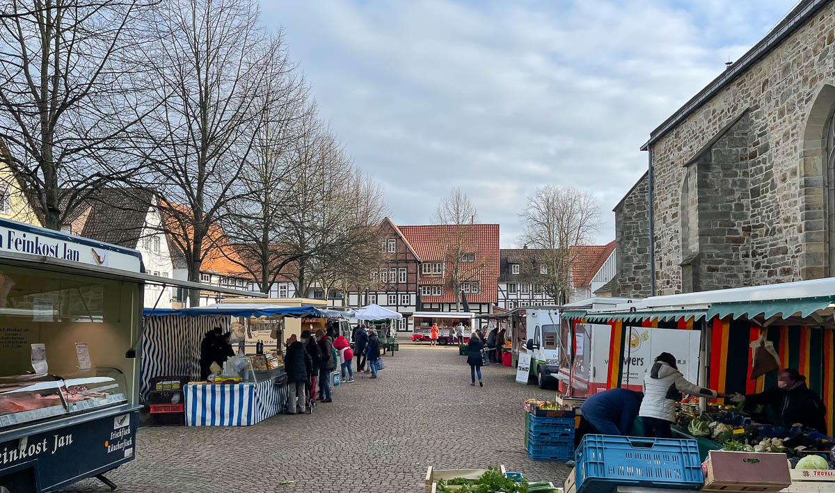 Der Wochenmarkt in Rinteln findet dienstags auf dem Marktplatz und samstags auf dem Kirchplatz in der Zeit von 07.00 bis 13.00 Uhr statt.