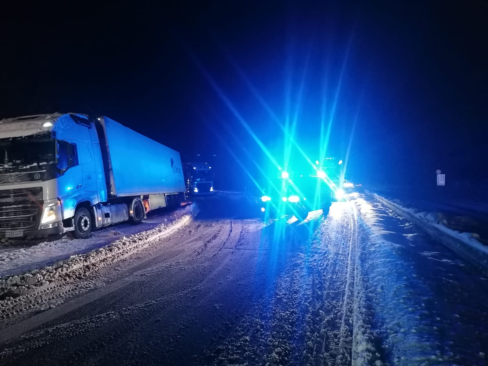 Um 3.00 Uhr ging die Nachricht ein, dass sich ein LKW im Seitenraum der Rechtskurve aus Richtung „Hasengarten“ kommend festgefahren hatte. Ein hinzugerufenes Abschleppunternehmen konnte den beladenen 40-Tonner auf Grund der Straßenverhältnisse nicht herausziehen, so dass ein zweites Abschleppfahrzeug erscheinen musste.