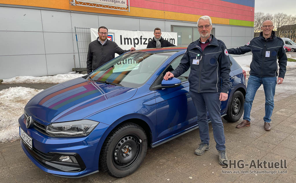 (Stadthagen) Der DRK-Fuhrpark erhält zeitweise Verstärkung rund um die Logistik fürs Impfzentrum und bei den mobilen Impfteams. Das Autohaus Kahle aus Hannover stellt dem Deutschen Roten Kreuz als Unterstützung für die Arbeit ab sofort und für mindestens drei Monate einen VW Polo kostenlos zur Verfügung.