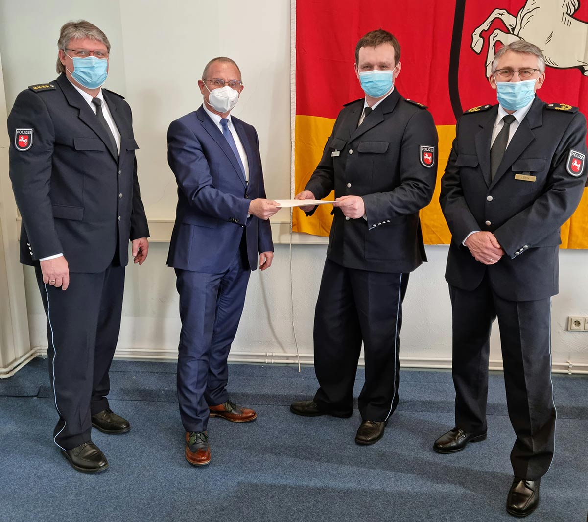 Die Amtseinführung fand aufgrund der aktuellen Entwicklung der Corona-Lage lediglich in kleiner Runde in den Räumlichkeiten des Polizeikommissariats Stadthagen statt. Neben Polizeipräsident Uwe Lührig und Polizeivizepräsident Gerd Lewin, nahm auch der Leiter der Polizeiinspektion Nienburg/Schaumburg, Mathias Schröder, an der Veranstaltung teil.