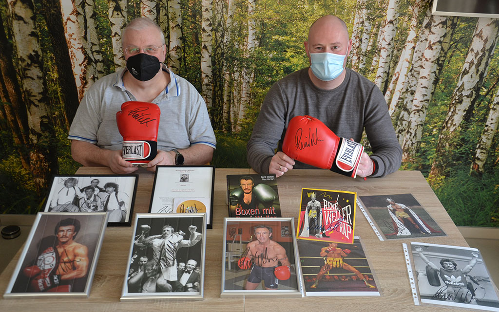Lampe und Heller waren begeistert: In dem Paket befanden sich unter anderem signierte Boxhandschuhe, eine signierte Biografie, mehrere DIN A4 Fotos mit Autogramm und ein Dokumentarfilm mit dem Titel „Der smarte René mit der harten Faust“. Dieser wurde vor 44 Jahren als bester Sport-Dokumentarfilm ausgezeichnet. Außerdem befindet sich auf der DVD der gefährliche Kampf in Sizilien, da Weller vorher von der italienischen Mafia eine Morddrohung erhalten hatte. Trotz der Drohung stieg Weller in den Ring, da sein Boxerherz größer und stärker war. An seiner Seite am Ring saßen bewaffnete Bodyguards. Zu dieser besonderen DVD liegt eine Legende und Foto bei, welches Weller mit seinen Bodyguards zeigt, die in ihrem Halfter ihre Waffen tragen. Dieses besondere Foto samt Legende ist von Weller ebenfalls signiert worden.