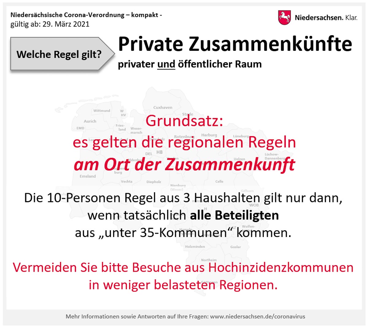 Über diese in der Corona-Verordnung angelegten Maßnahmen hinaus ergehen die folgenden Bitten an die Menschen in Niedersachsen und an die niedersächsische Wirtschaft: