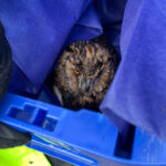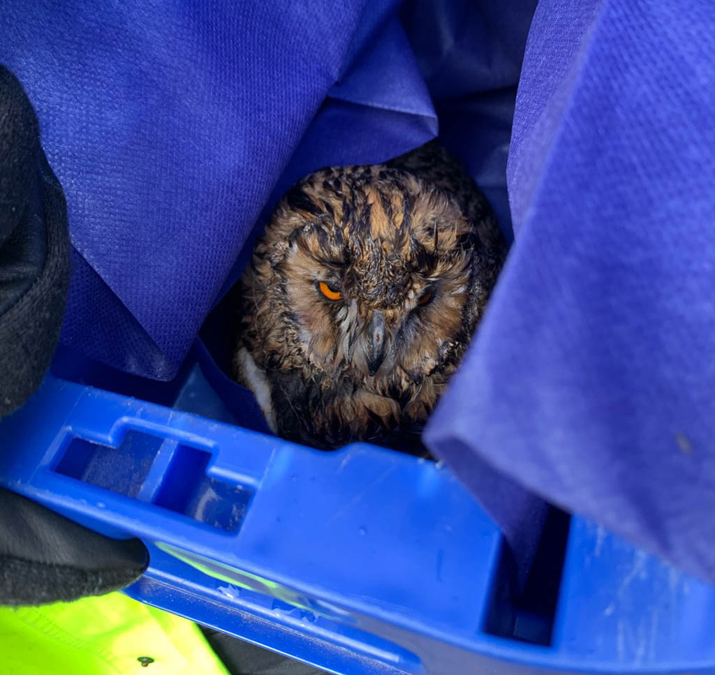 Um das Tier nicht weiter zu verängstigen oder zu verletzen, näherte sich Polizeikommissaranwärter Josh Schmeichel vorsichtig von der Seite und setze das Tier in eine mit Stoff ausgelegte Kiste. Dann ging es zur Wildtierstation nach Sachsenhagen. Dort wird die Eule jetzt wieder aufgepäppelt. (po/Fotos: Polizei)