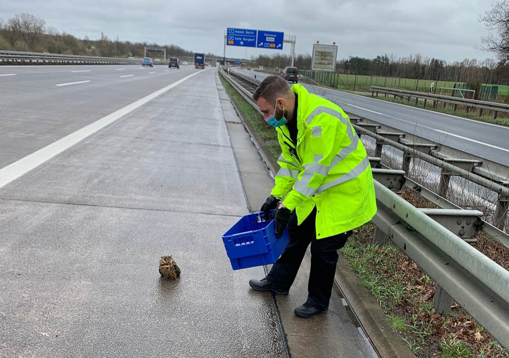(Hannover/Sachsenhagen) Die Autobahnpolizei Hannover hat am Ostermontag eine Eule von der Autobahn gerettet. Das verletzte Jungtier wurde zur Wildtierstation nach Sachsenhagen gebracht, wo sie nun gesund gepflegt wird.