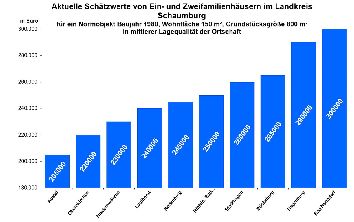 Nahezu überall, aber gerade in attraktiven Lagen und bei neueren energieeffizienteren Wohnungen, sind langfristig Mietpreissteigerungen vorhanden. Die in den Städten Stadthagen, Bückeburg, Rinteln und Bad Nenndorf ausgewerteten Mieten von Wohnungen jünger als 10 Jahre liegen im Mittel bei 8,50 €/m² Nettokaltmiete und damit deutlich über dem Mietniveau älterer Wohnungen. Für jüngst errichtete Wohnungen werden in Einzelfällen Nettokaltmieten von bis zu 10 €/m² gezahlt.