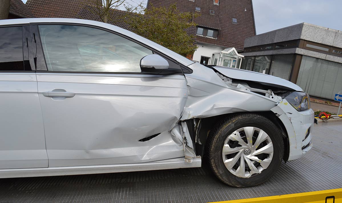 Das Fahrzeug der Bückeburgerin geriet in der Folge gegen die Auffahrrampe des Transporters und wurde auf der Beifahrerseite erheblich beschädigt.