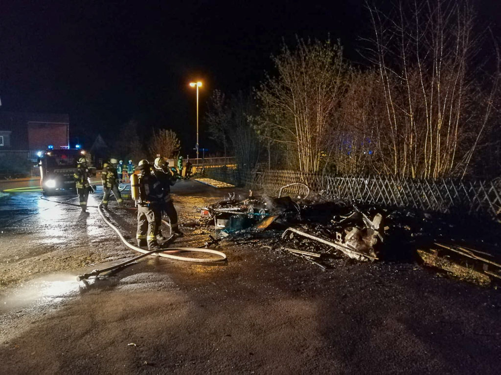 (Buchholz) Am Samstagabend gegen 22:37 Uhr wurden die Feuerwehren der Samtgemeinde Eilsen zu einem Brand in die Bückebergstraße in Buchholz gerufen. Dort brannte auf dem Gelände einer ehemaligen Tischlerei und Zimmerei ein großer Wohnanhänger.