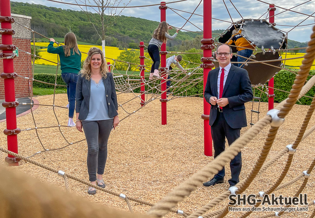 Im Anschluss wurde das neue Outdoor-Spielgerät auf dem Schulhof eingeweiht. Für die anwesenden Kinder ein großer Moment, durften sie sich nach Wochen der Bautätigkeit endlich am Seilgarten der Berliner Seilfabrik austoben. Es bietet Platz für bis zu 50 Kinder gleichzeitig. Lob gab es von Priemer fürs engagierte Kollegium um Schulleiterin Marieke Dehne, die zu berichten wusste, dass die Nachfrage nach Ganztagsbetreuung zunimmt. 80 Kinder würden im Normalbetrieb am Schulstandort Deckbergen betreut. Nachdem ein Teil von ihnen bereits gestern das kreative Spielgerät erklettern konnte, sind die anderen Kinder aufgrund der Beschulung im Wechselrhythmus heute an der Reihe.