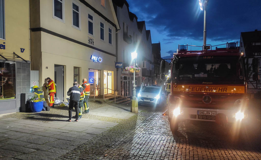 Die Gasse war durch eine Tür gesichert, die nicht durch die Polizei geöffnet werden konnte. Mit Hilfe der Feuerwehr Bückeburg Stadt konnte die Eule schließlich gerettet werden.