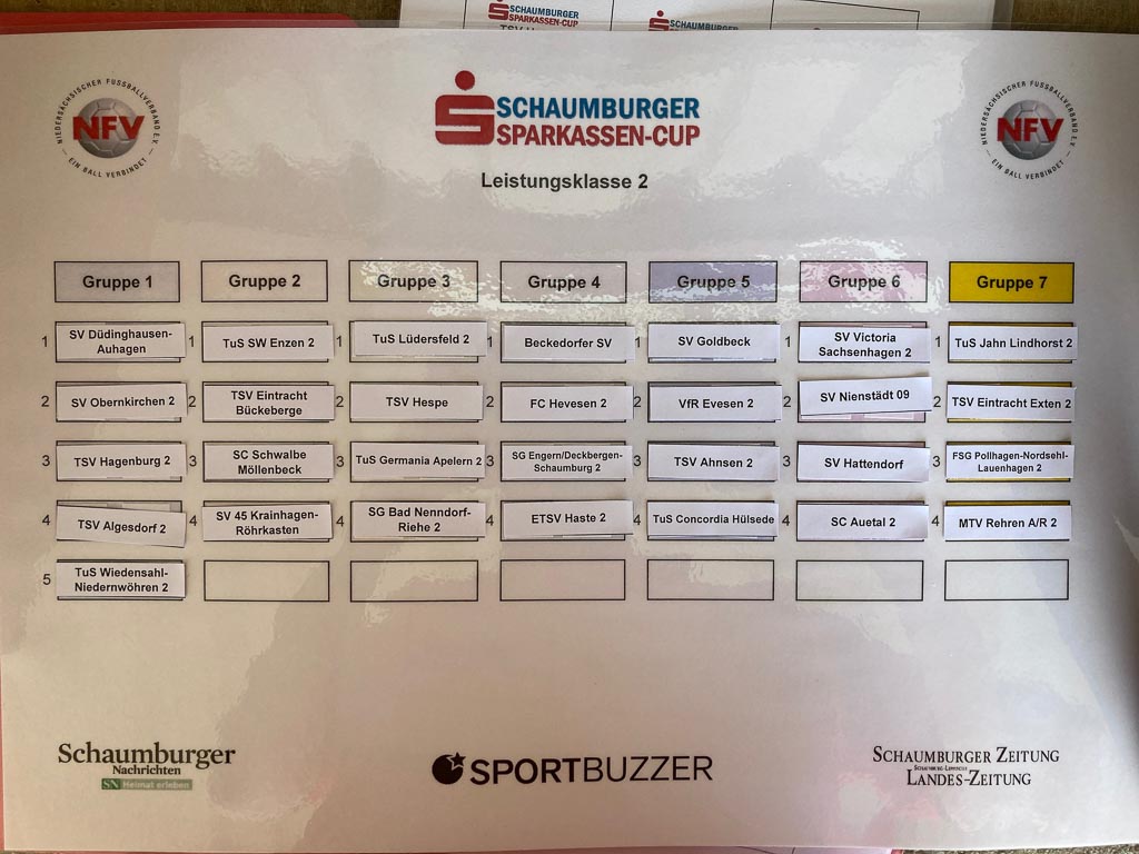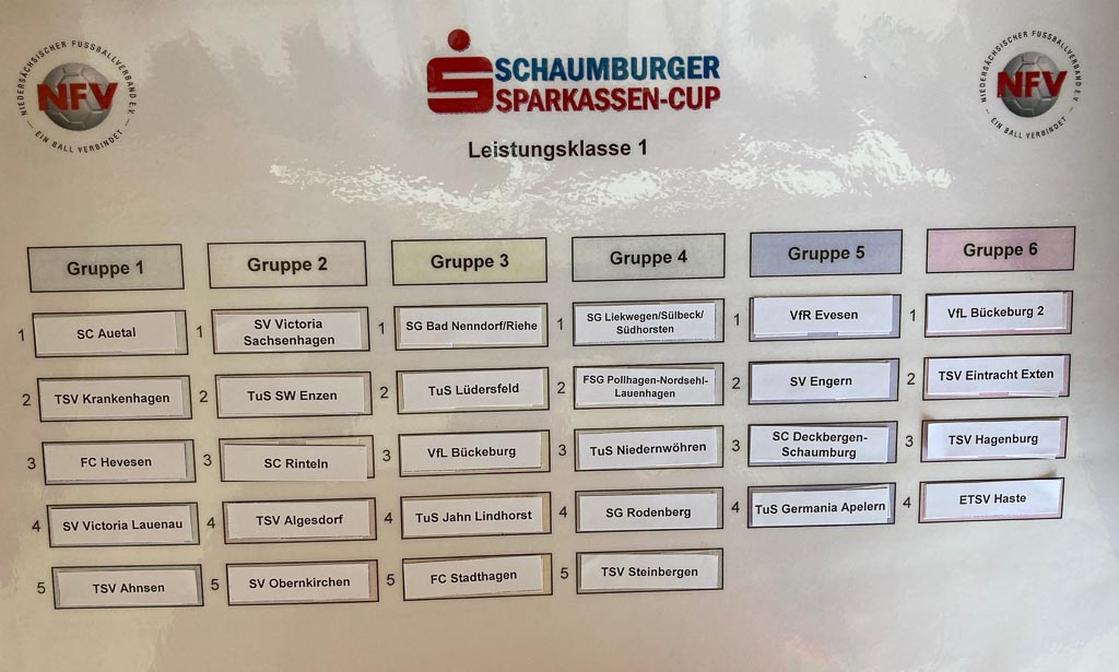 (Landkreis/Nienstädt) Fußballteams der 1. Kreisklasse treffen auf Teams der Landesliga – die Gruppen des 1. Schaumburger Sparkassen-Cups wurden jetzt bei bestem Wetter im Schierbachstadion ausgelost.