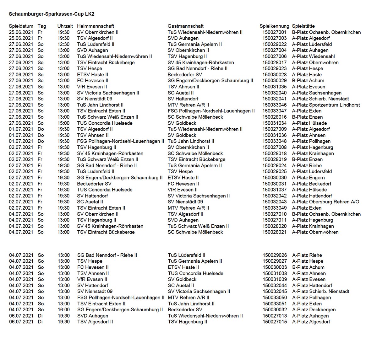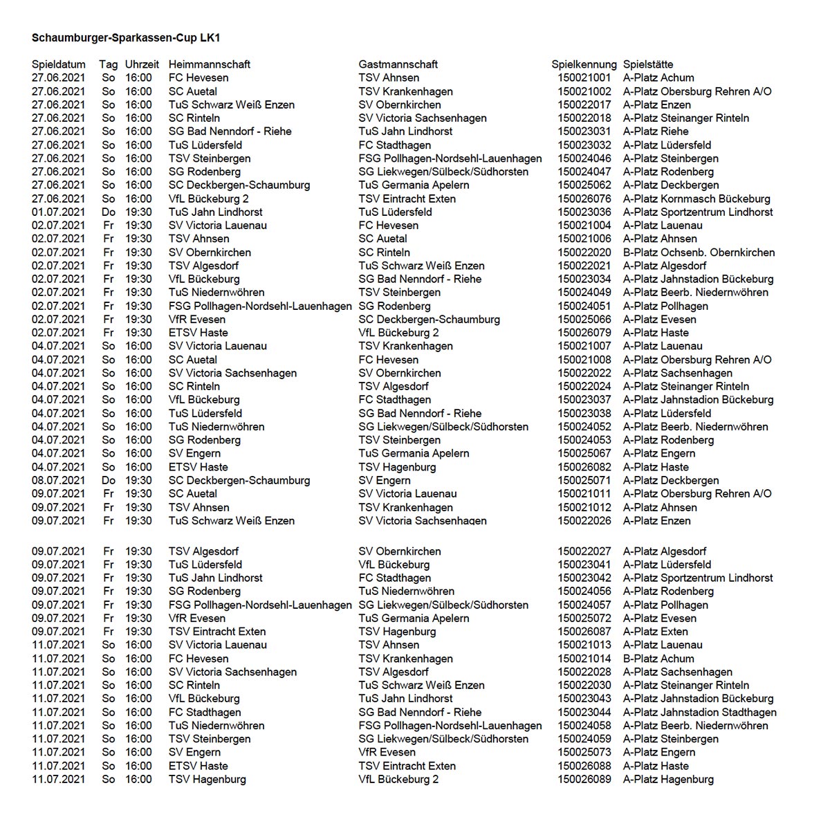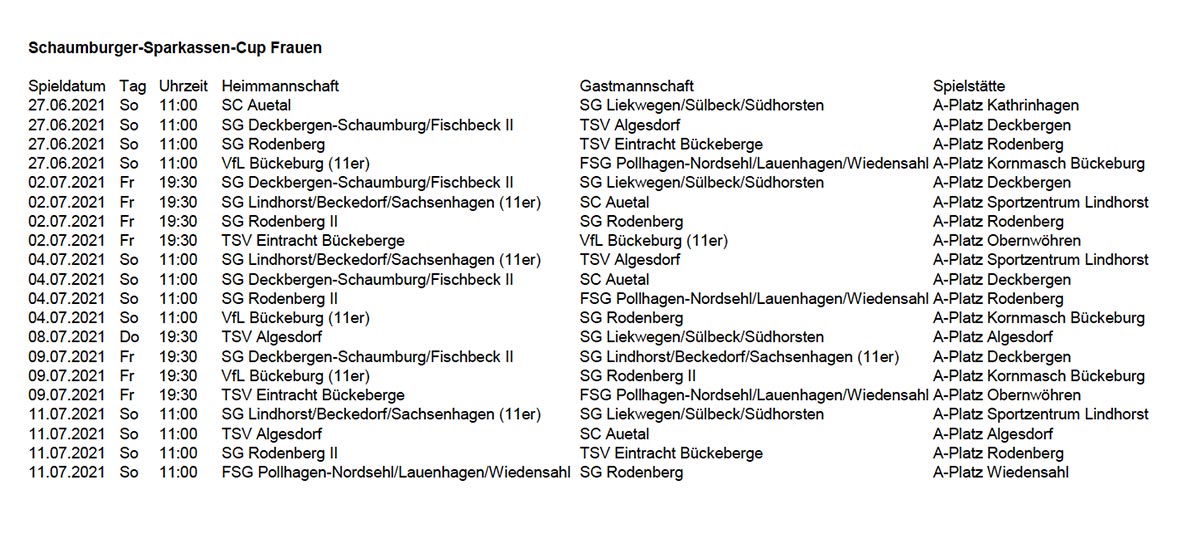 (Landkreis) Für den Schaumburger Sparkassen-Cup stehen die Termine der Gruppenphase fest.