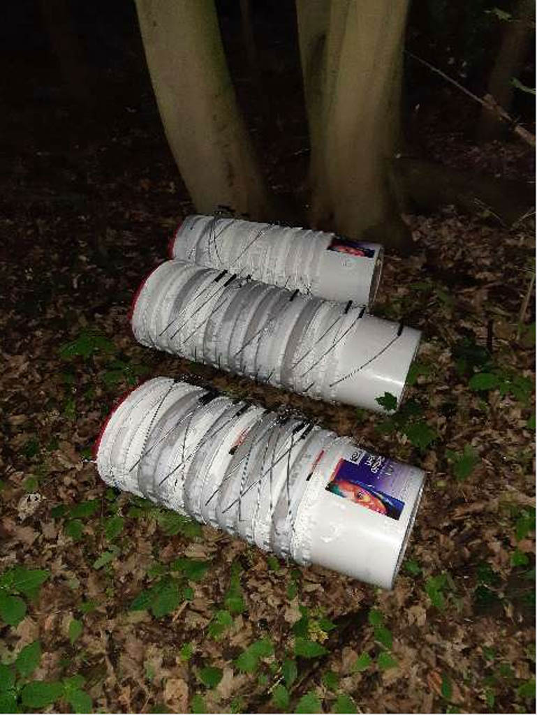 Hier fand der Helpser ungefähr 100 ineinander gestapelte, leere Farbeimer vor.
