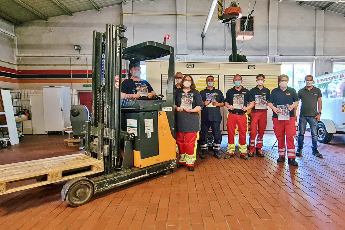 Am nächsten Morgen ging es mit einer weiteren Einweisung auf das Fahrzeug und zwei Blöcken der praktischen Ausbildung weiter. Hierbei wurde der Transport von Lasten, Standsicherheit, Schwerpunkt des Gabelstaplers, Arbeiten mit der Hubarbeitsbühne sowie das Fahren in öffentlichen Bereichen geübt. Nachdem alle Teilnehmer bis zum frühen Nachmittag ihr Können auf die Probe gestellt hatten, fand im Anschluss die Abnahme der praktischen Prüfungen statt.