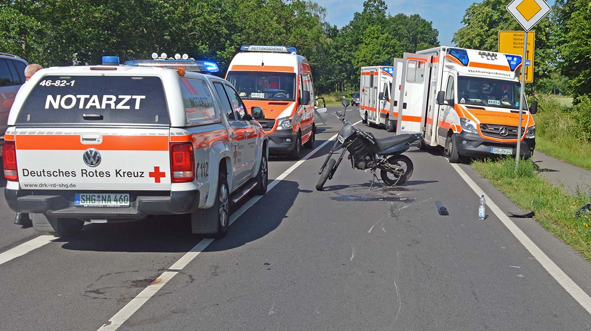 Gegenüber der Polizei gab die Ahnserin an, dass sie als Linksabbiegerin aus der Straße Am Eichholz kommend bei Grünlicht in Fahrtrichtung Minden mit ihrem VW abgebogen sei und das Motorrad aus Richtung Müsingen kommend in das Fahrzeugheck gefahren sei.