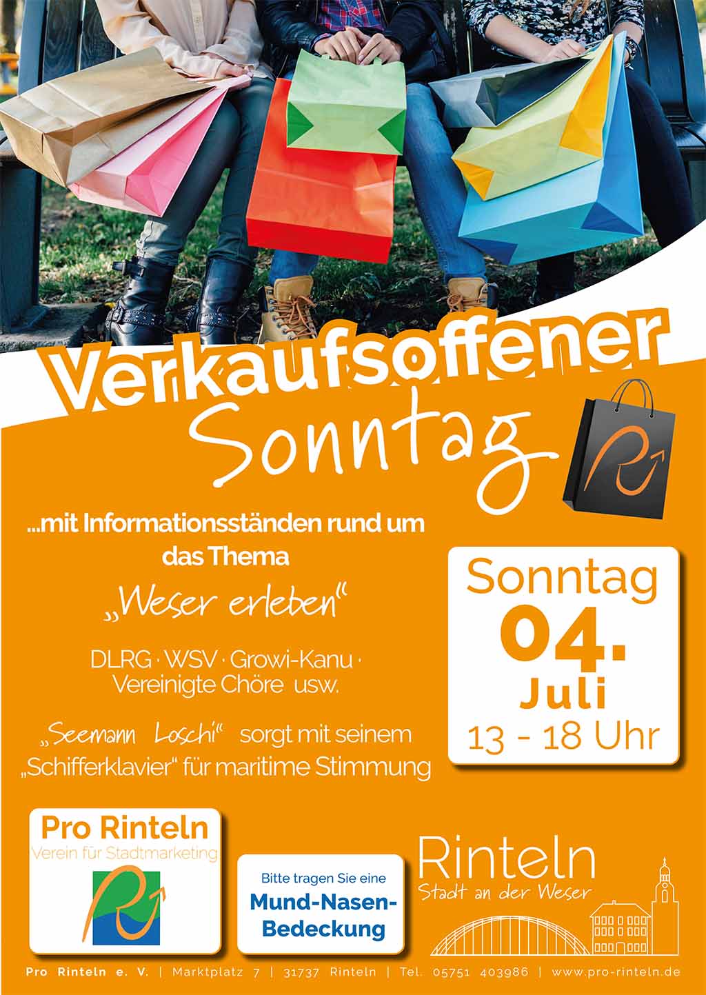 „Der Rintelner Einzelhandel meldet sich mit einem umfassenden Angebot und einer fachkundigen Beratung mit diesem ersten verkaufsoffenen Sonntag des Jahres zurück. Auch die Gastronomie bietet wieder ein umfassendes Angebot in der Innenstadt“, erklärt Thomas Gieselmann, erster Vorsitzender des Stadtmarketingvereins Pro Rinteln. Weiter führt er aus: „Wir freuen uns in Kooperation mit der Stadtverwaltung und den zuständigen Behörden diese Aktion und den verkaufsoffenen Sonntag realisieren zu können.“