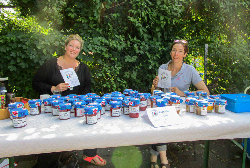 Der Förderverein der Einrichtung „Für uns Kinder e.V.“ trat mit viel Engagement in Aktion. Schon Wochen vorher wurde von den aktiven Mitgliedern Gläser gesammelt, um Obstspenden gebeten und Marmelade gekocht. Diese konnte dann zu den Abholzeiten des Festes an die wartenden Eltern verkauft werden. Auch hier wurde auf bestehende Abstandregeln geachtet.
