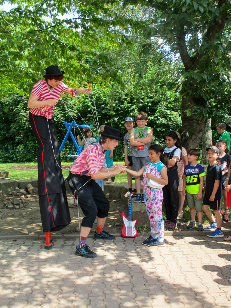 Auch die Grundschulkinder durften leider nur ohne ihre Eltern dem Fest beiwohnen. Aber auch hier war die Zeit fast schon zu knapp, um die vorbereiteten Attraktionen alle genießen zu können. Für sie waren zu den anderen Aktivitäten eine coole Disco und natürlich viel ansprechende Dekoration ein unentbehrlicher Teil der Festivitäten. Auch hier begeisterte die Seifenblasenschau mit einer Vorstellung und das Improtheater „Spek Spek“ aus Kleinenbremen macht den Nachmittag zu einem besonderen Erlebnis.