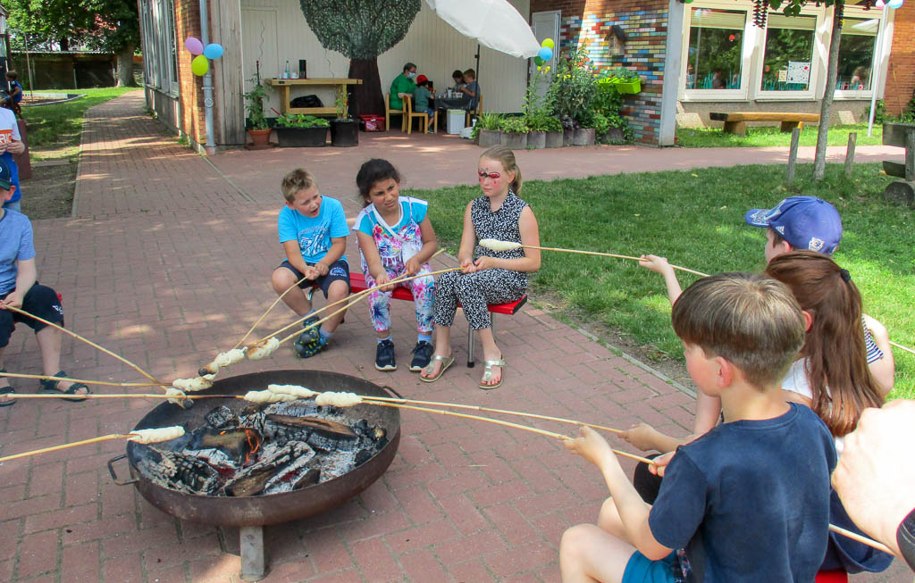 Am vergangenen Samstag fanden sich alle Kindergartenkinder pünktlich um 10 Uhr in der Kindertagesstätte ein, um ihr Fest zu feiern. Eltern durften leider nicht mitfeiern. Dafür wurden unzählige Wünsche der Kinder zur Festgestaltung umgesetzt. Wasserspiele, Edelsteinsuche und Stockbrot am Lagerfeuer rösten, standen auf der Wunschliste ganz oben. Als absoluten Höhepunkt konnten die Kinder eine Seifenblasenshow genießen. In dieser feierlichen Atmosphäre bekamen auch die Schulanfänger die ihnen gebührende Aufmerksamkeit. Unter großem Applaus und mit schönen Erinnerungsgeschenken bedacht, konnten sie im Anschluss der Feierlichkeiten wieder von ihren Eltern abgeholt werden.