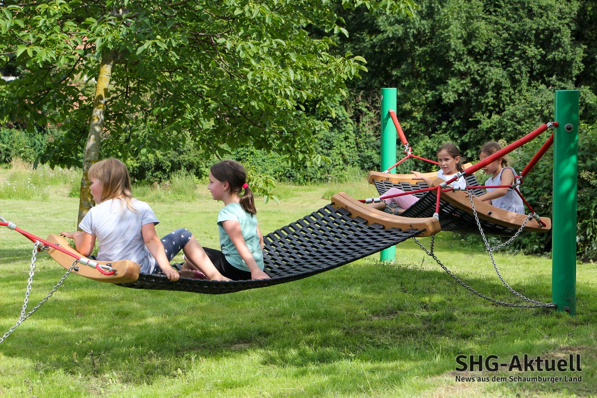 Nun war es endlich soweit, und die Kids aus der Umgebung drängelten schon am Eröffnungstag, um das Gelände zu stürmen. Zu Recht: Schön und vielseitig ist er geworden, der „neue“ alte Spielplatz hinter der Mühle. Tolle Spielgeräte laden zum Toben ein, während Ruhebänke und Hängematten zum Verweilen und Ausruhen animieren. Bald werden noch eine ökologische Bepflanzung und Nistkästen an der alten Mühle folgen.