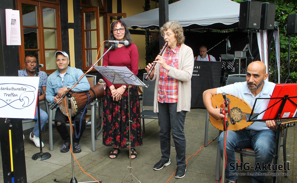 Für Feierstimmung sorgte auch Ralf Diehl, der ebenfalls bereits seit 30 Jahren für die Stätte musiziert und mit dem sich Sareyka nach eigener Aussage mit einem Augenzwinkern verständigen kann, und der Verein „Interkulturelles Treffen“, der selbst in der Begegnungsstätte sonntags Treffen verschiedener Gruppen abhält. Mit „Froh zu sein bedarf es wenig“ trafen die Musizierenden definitiv den richtigen Ton und besangen so das passende Motto zum Jubiläumstag.