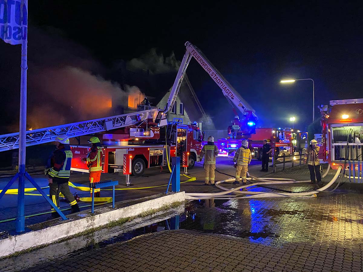 Bereits auf der Anfahrt gab es mehrere Notrufe bei der Leitstelle die über das Übergreifen auf das nebenstehende Wohnhaus informierten. Das Stichwort wurde aufgrund der Lage auf Feuer Gebäude erhöht. Die Feuerwehren Wendthagen-Ehlen, Krebshagen Hörkamp-Langenbruch und die Ortsfeuerwehr Bückeburg haben sich ebenfalls auf den Weg zur Einsatzstelle gemacht.