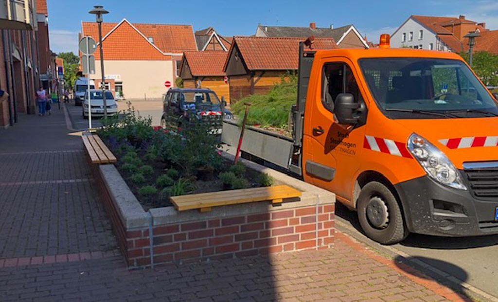 (Stadthagen) Das Pflanzbeet in der Fußgängerzone am Taxistand Hundemarkt wurde neu gestaltet.