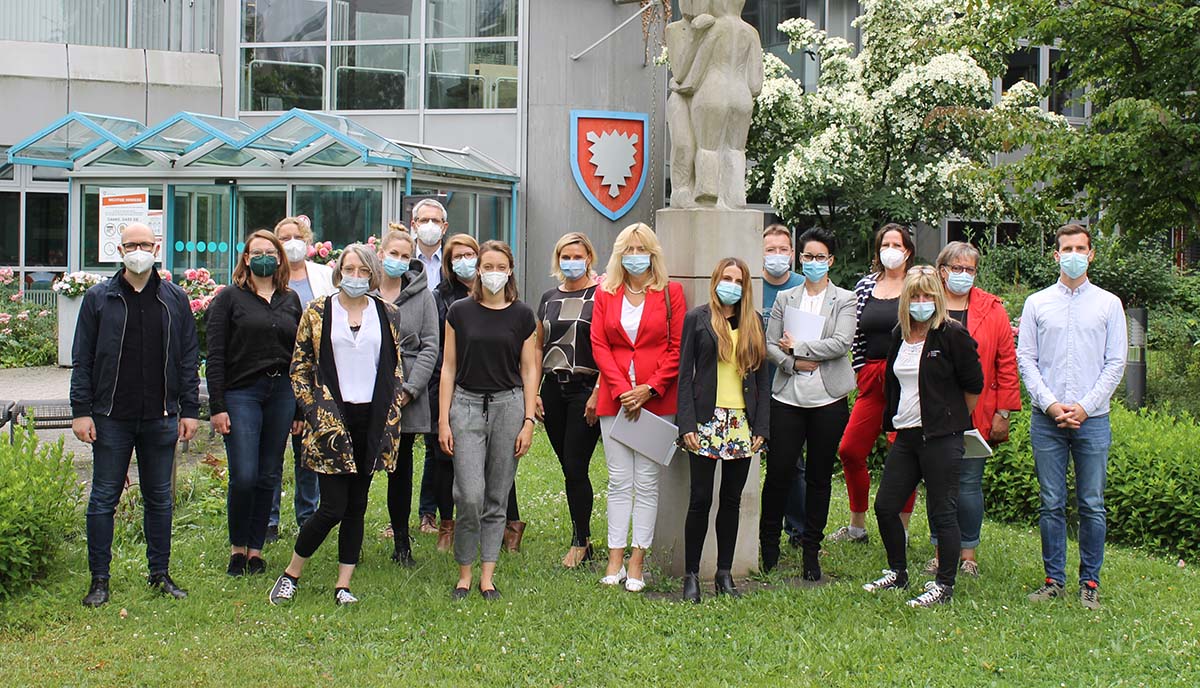 „Es ist nämlich äußerst wichtig, dieses Thema gemeinsam anzugehen“, erklärt der Projektkoordinator und betont die bereits wahrgenommene Motivation und Bereitschaft aus den bisher geführten Gesprächen. Die Entstehung dieses Projekts basiert maßgeblich auf den Ideen der Arbeitsgruppe „Fachkräftesicherung in der Pflege“. Diese gründete sich 2018 aus der Pflegekonferenz des Landkreises und beschäftigt sich seitdem mit Fragen der Akquise neuer Fachkräfte in der Pflege. Anfang Juli traf sich die Arbeitsgruppe seit langer Zeit wieder in Präsenz, um den weiteren Fahrplan miteinander abzustimmen (siehe Foto).