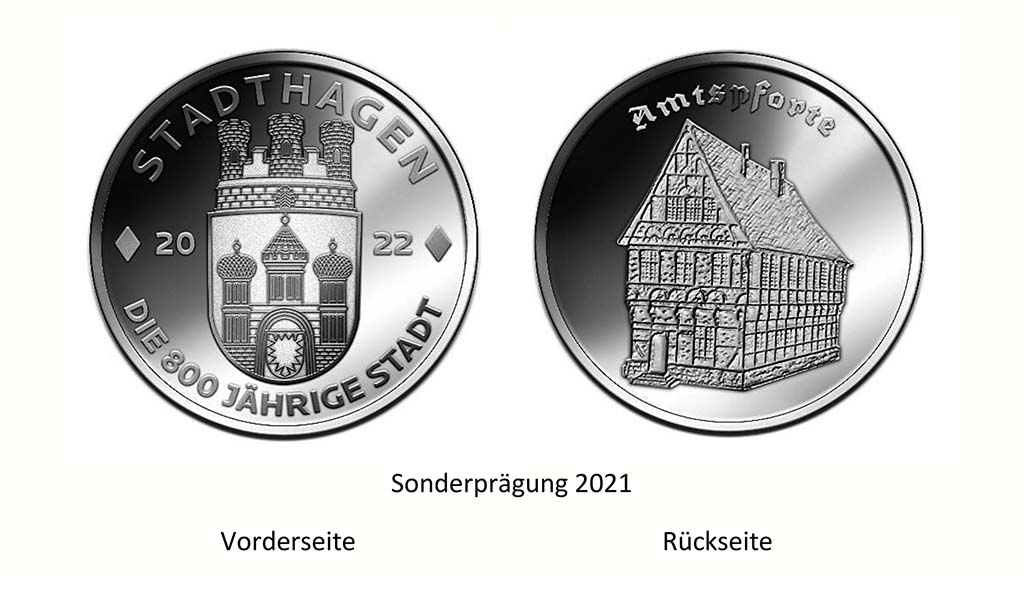 Auch würden die dem Verein ab dem Verkauf der 251. bis 800. Medaille zugedachten Spenden in Höhe von 2,97 Euro pro Exemplar sinnvoll für zukünftige Projekte des Vereins für die Stadt Stadthagen eingesetzt werden. Insofern hofft der Vorstand auf möglichst viele Interessenten für die Sonderprägung, deren Bestellformulare bei den Stadthäger Geschäftsstellen der Sparkasse, der Volksbank sowie der Tourist-Information Stadthagen für Interessenten ausliegen.