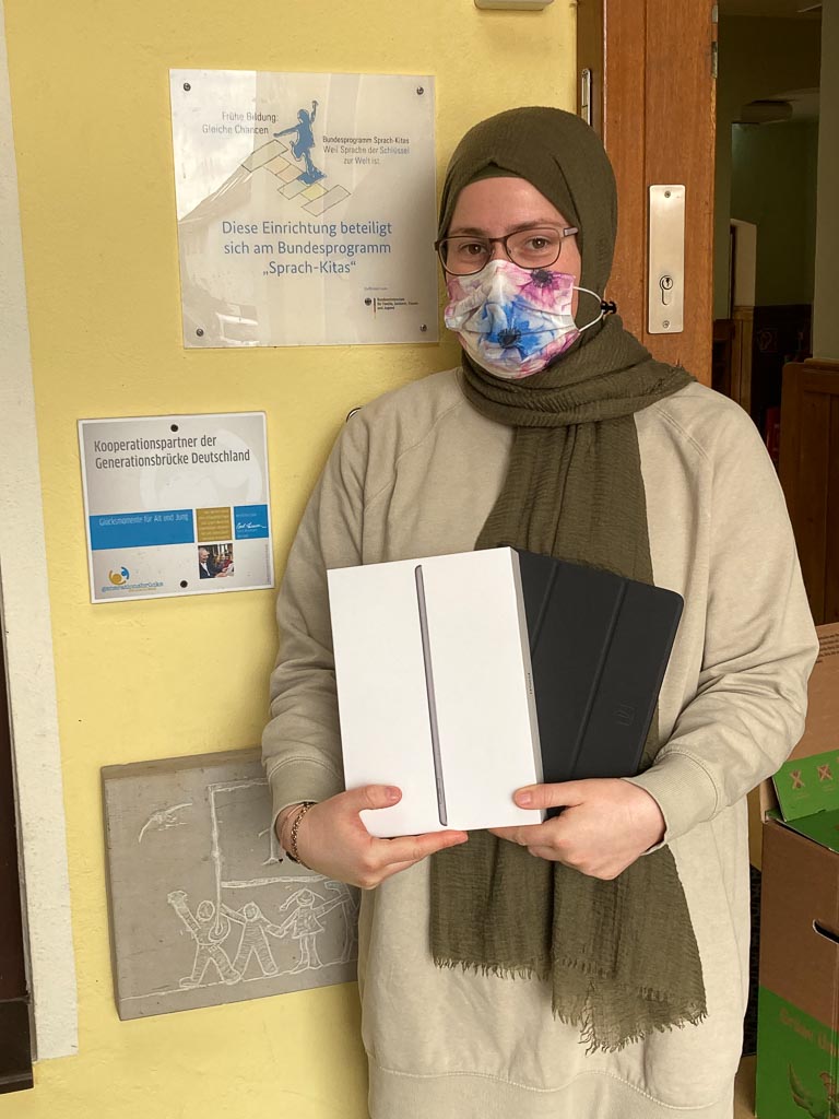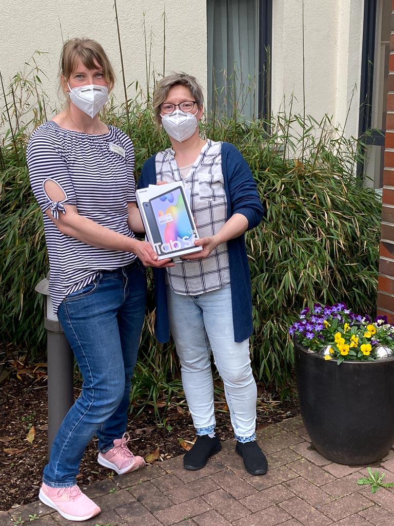 Deshalb hat die Bürgerstiftung in Abstimmung mit den acht Einrichtungen nach einer Lösung gesucht, die die ersehnte Kommunikation zwischen den Generationen wenigstens ein wenig ermöglicht. So entstand die Idee, alle vier Tandems mit Tablets auszurüsten, je Einrichtung eins, um Nachrichten auszutauschen, sich auch wieder einmal zu sehen und miteinander zu klönen.