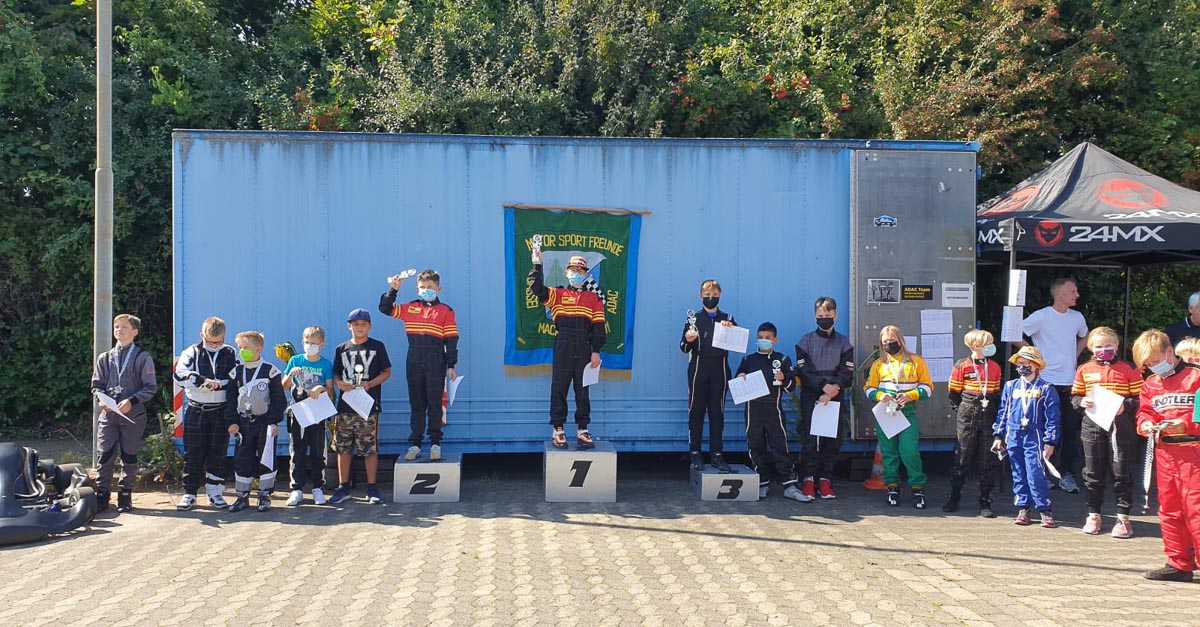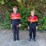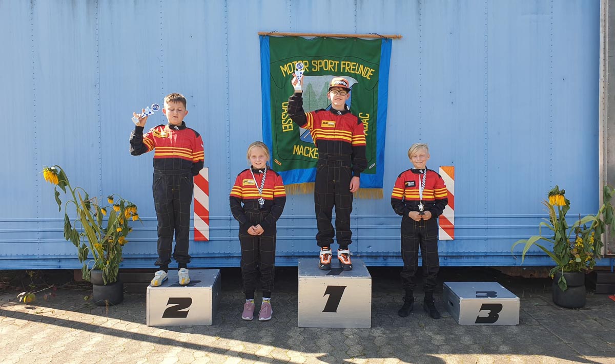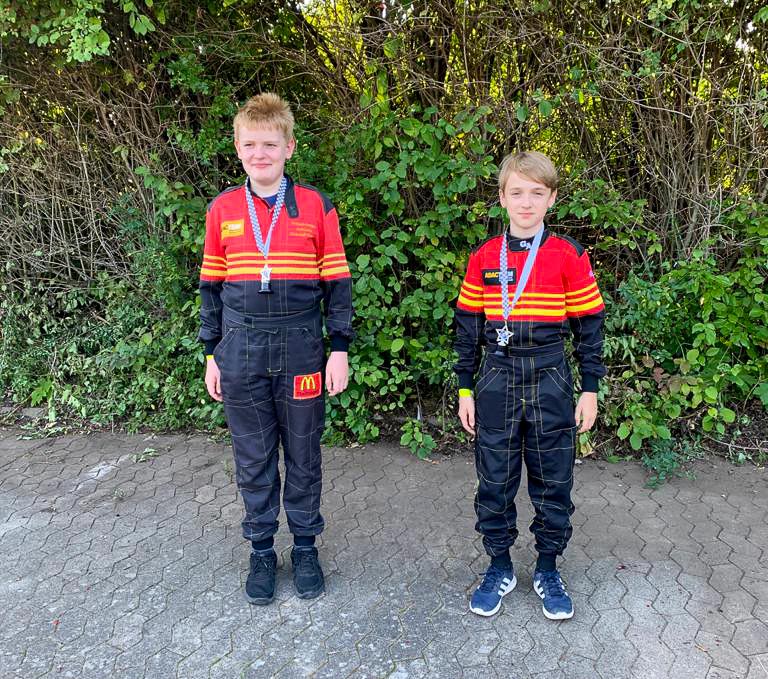 Das Highlight waren anschließend in der K2 Nevio Ilias Schulz und Marlon Harms mit den Plätzen eins und zwei. „Es war echt nervenaufreibend für mich als Vater“, sagte Robert Schulz. „Im ersten Wertungslauf trennten Nevio und einen Jungen eines anderen Vereins nur 0,04 Sekunden. Doch in der zweiten Runde fuhr Nevio Bestzeit und setzte sich damit ohne Fehler an die Spitze.“ Marlon Harms, ebenfalls vom Stadthäger Motor Club e.V. im ADAC, war nur 1,13 Sekunden langsamer in der Gesamtfahrzeit als Nevio und umrundete den Parcours auch ohne Fehler. Damit war ihm Platz zwei auf dem Siegertreppchen sicher.