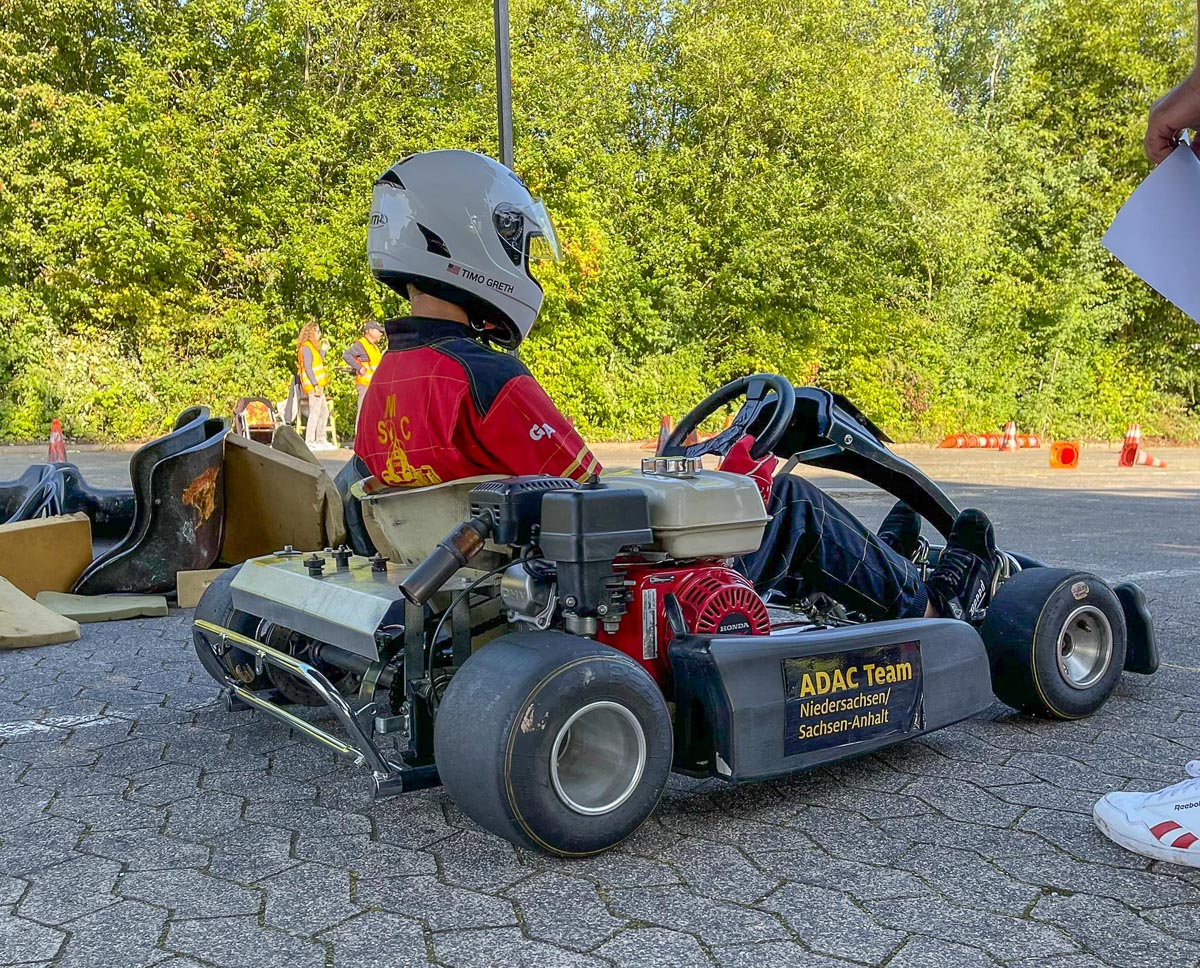 Als Ältester startete Timo Greth bei den Motorsportfreunden Dassel-Mackensen in Einbeck mit der K5 morgens und nichts ging so, wie es sollte. Pylonen im Kreisel, noch ein Torfehler und es wurde der letzte Platz der neun Starter.