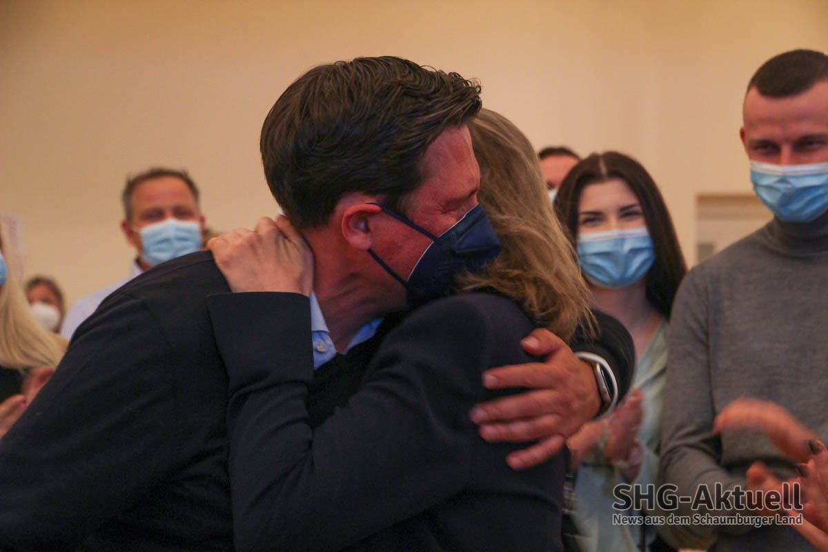 Um 19.51 Uhr dann der Jubel und große Erleichterung im CDU-Lager: Wohlgemuth konnte die Wahl mit 53,45 Prozent für sich entscheiden. Ein sichtlich gerührter Axel Wohlgemuth konnte sich vor Glückwunsch-Bekundungen kaum retten, die ersten Gratulanten waren natürlich Ehefrau Christin und Tochter Carlotta, doch auch der derzeit noch amtierende Bürgermeister Reiner Brombach drückte seine Glückwünsche aus. „Ich danke allen Helfern, meiner Familie und meinem Wahlteam. Den Stress der letzten Wochen kann wahrscheinlich nur Sandra Schauer mit nachvollziehen, der Wahlkampf war anstrengend und schwer, ebenso die letzten acht Jahre. Aber ich habe mich gut darauf vorbereitet und jetzt habe ich es wirklich geschafft. Ich freue mich auf die Arbeit mit dem neuen Stadtrat und darauf, Bückeburg in der Zukunft noch weiter nach vorne zu bringen“, so der 51-jährige Cammeruner.