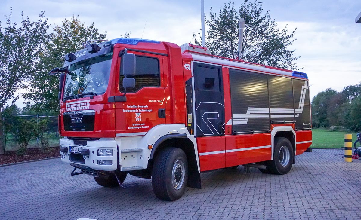 Info: Das neue Tanklöschfahrzeug, kurz TLF 3000, ist auf einem MAN TGM – 18340 mit Automatkgetriebe aufgebaut. Den feuerwehrtechnischen Aufbau übernahm die Firma Rosenbauer aus Luckenwalde. Es besitzt einen eingebauten Löschwassertank mit einer Größe von 4000 Liter Wasser, sowie eine Dachmonitor zur Wasserabgabe. Ein ausfahrbarer Lichtmast und weitere Ausrüstung komplettieren das neue Fahrzeug.