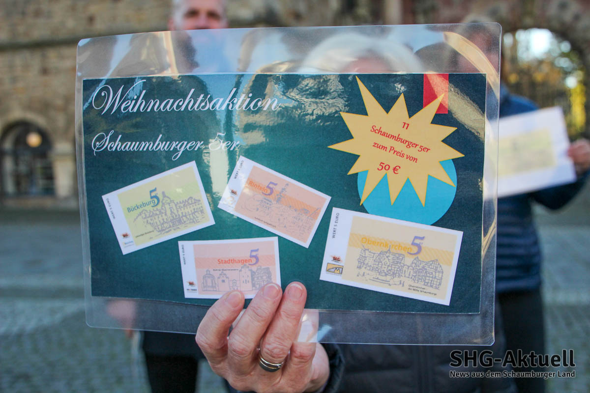 Die „Schaumburg-5er“ sind ab dem 1. Dezember wieder im smarten Paketpreis erhältlich. Für den Preis von zehn „Fünfern“ gibt es elf Stück – einer kommt als Bonus kostenlos obendrauf. Das Zahlungsmittel gilt in hunderten teilnehmenden Geschäften und Gastronomiebetrieben in Bückeburg, Rinteln, Stadthagen und Obernkirchen und bietet somit eine große Auswahl an Einlösemöglichkeiten.