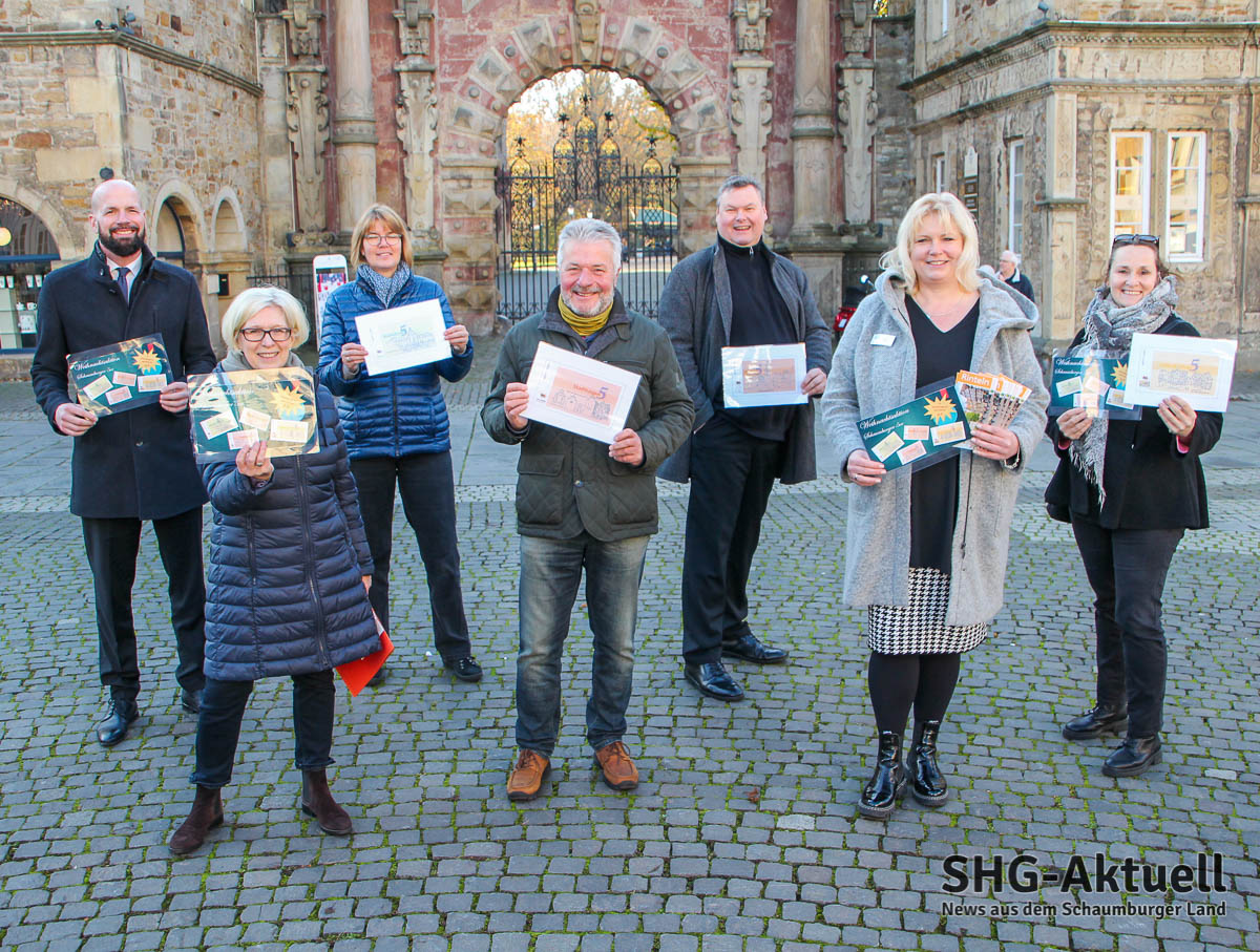 In einem gemeinsamen Pressetermin präsentierten Antje Niemeyer (Tourist-Information und Stadtverwaltung Bückeburg), Dörte Worm-Kressin (Bürgermeisterin von Obernkirchen), Günter Raabe (Vorsitzender des Stadtmarketingvereins Stadthagen) sowie Thomas Gieselmann (erster Vorsitzender vom Stadtmarketingverein Pro Rinteln) und Pro-Rinteln-Mitarbeiterin Anja Spohr das Schaumburger Zahlungsmittel, mit dem die Kaufkraft an die Region gebunden und der lokale Einzelhandel und Gastronomie gestärkt werden.