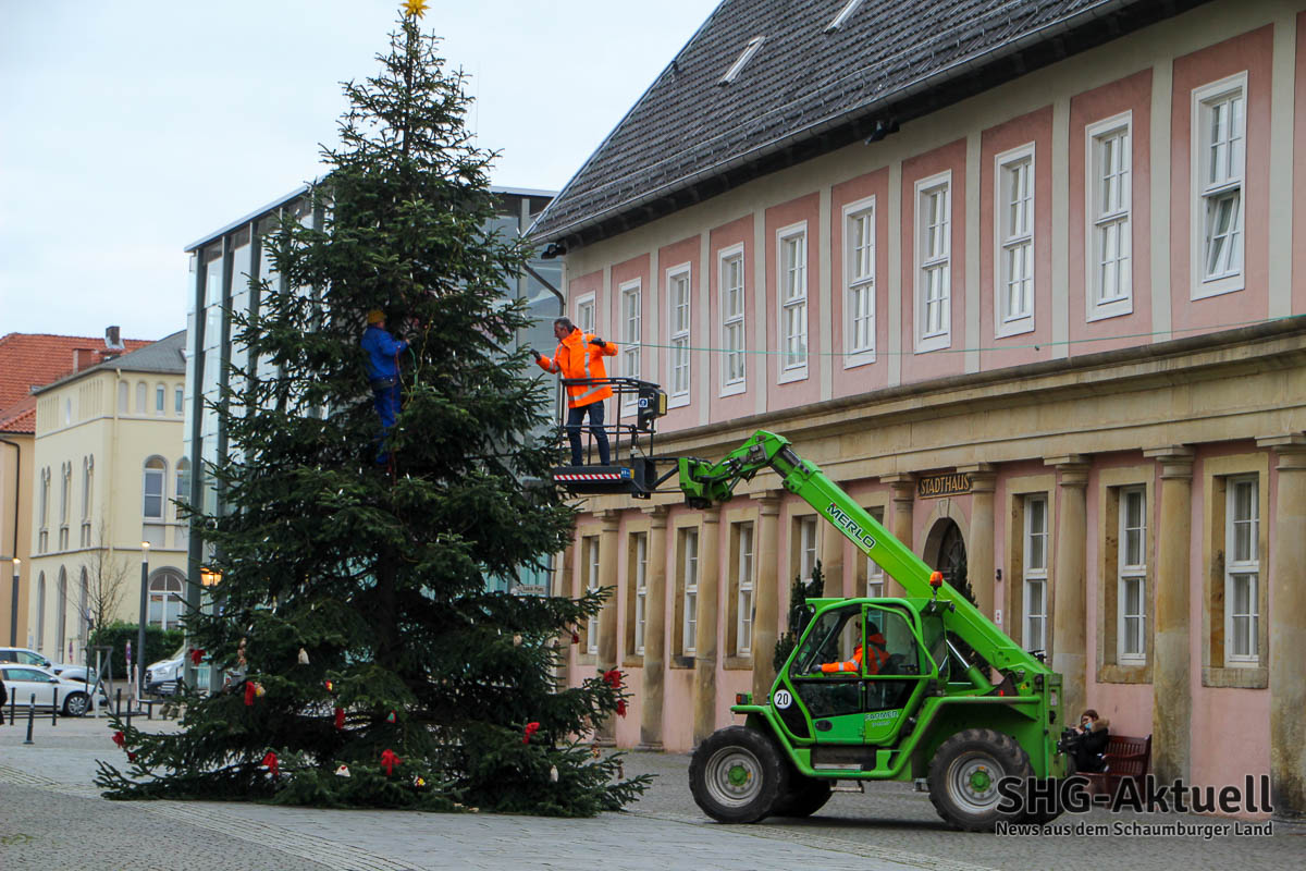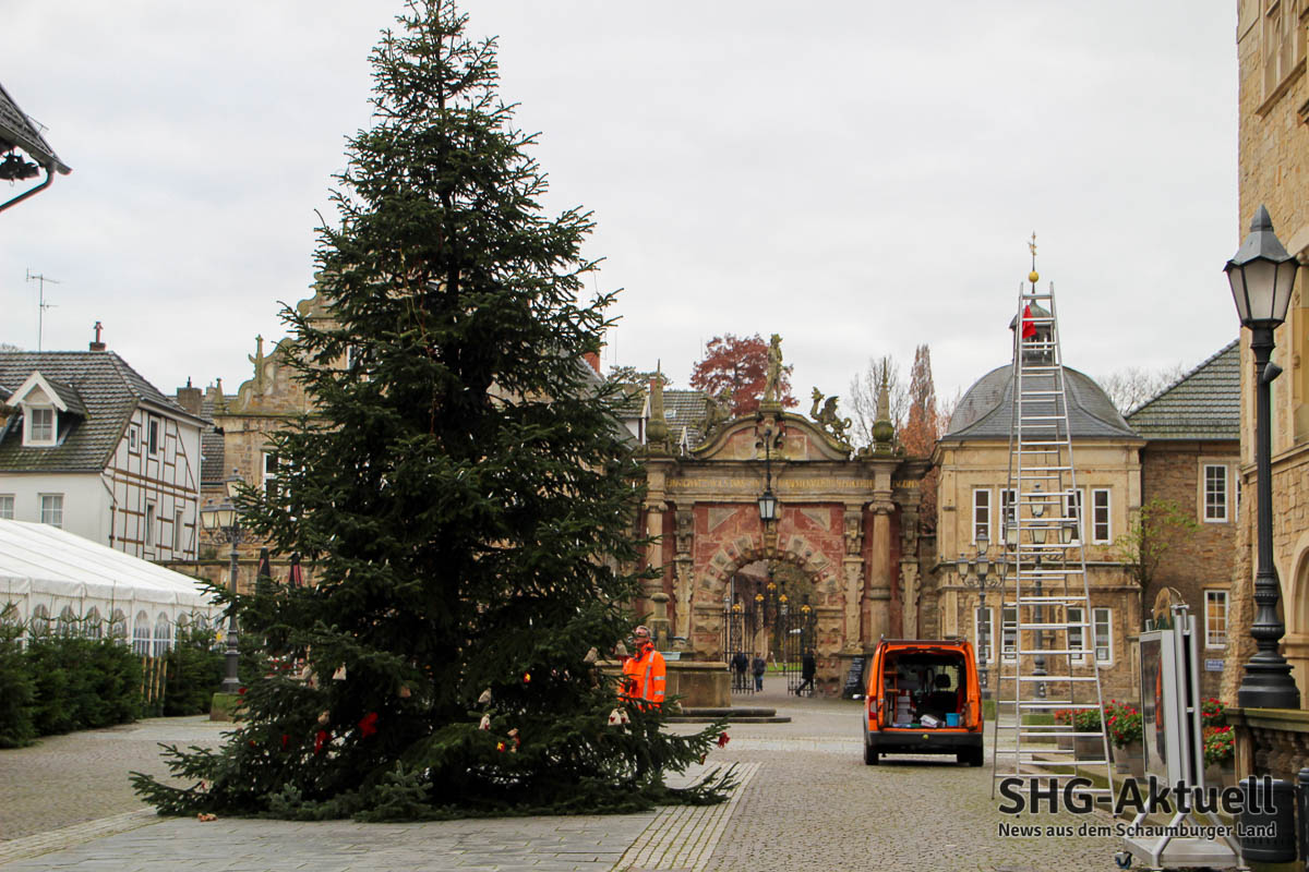 (Bückeburg) Dienstag war es soweit: Wie in jedem Jahr wurde kurz vor dem ersten Advent die imposante Nordmanntanne auf dem Marktplatz aufgestellt.